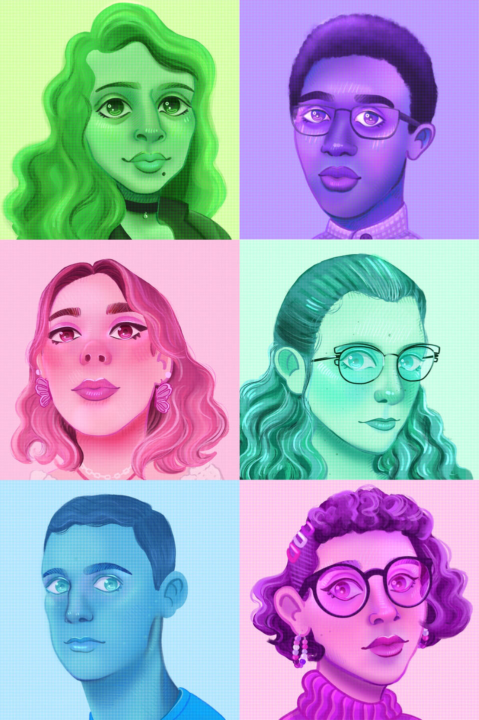 Digitally painted on the software Procreate in 2022, this series uses saturated underpainting and detailed hatching to create vivid portraits. The video below outlines the process of the last work in this collection.
