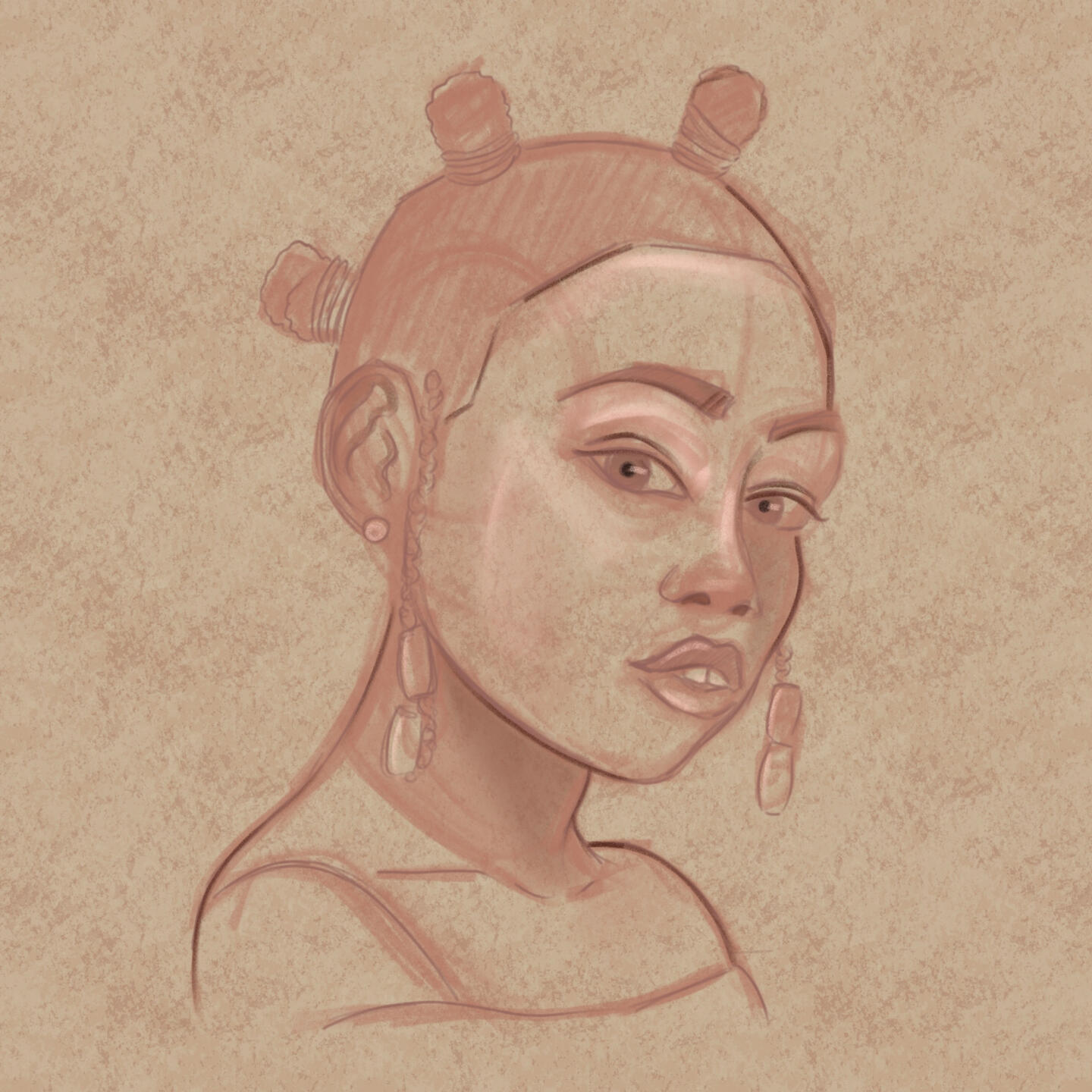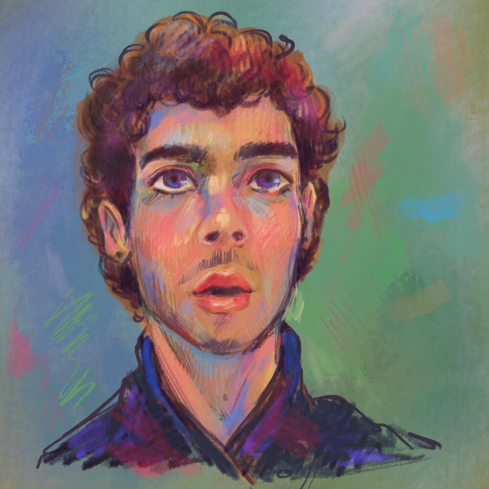 Digitally painted on the software Procreate in 2022, this series uses saturated underpainting and detailed hatching to create vivid portraits. The video below outlines the process of the last work in this collection.